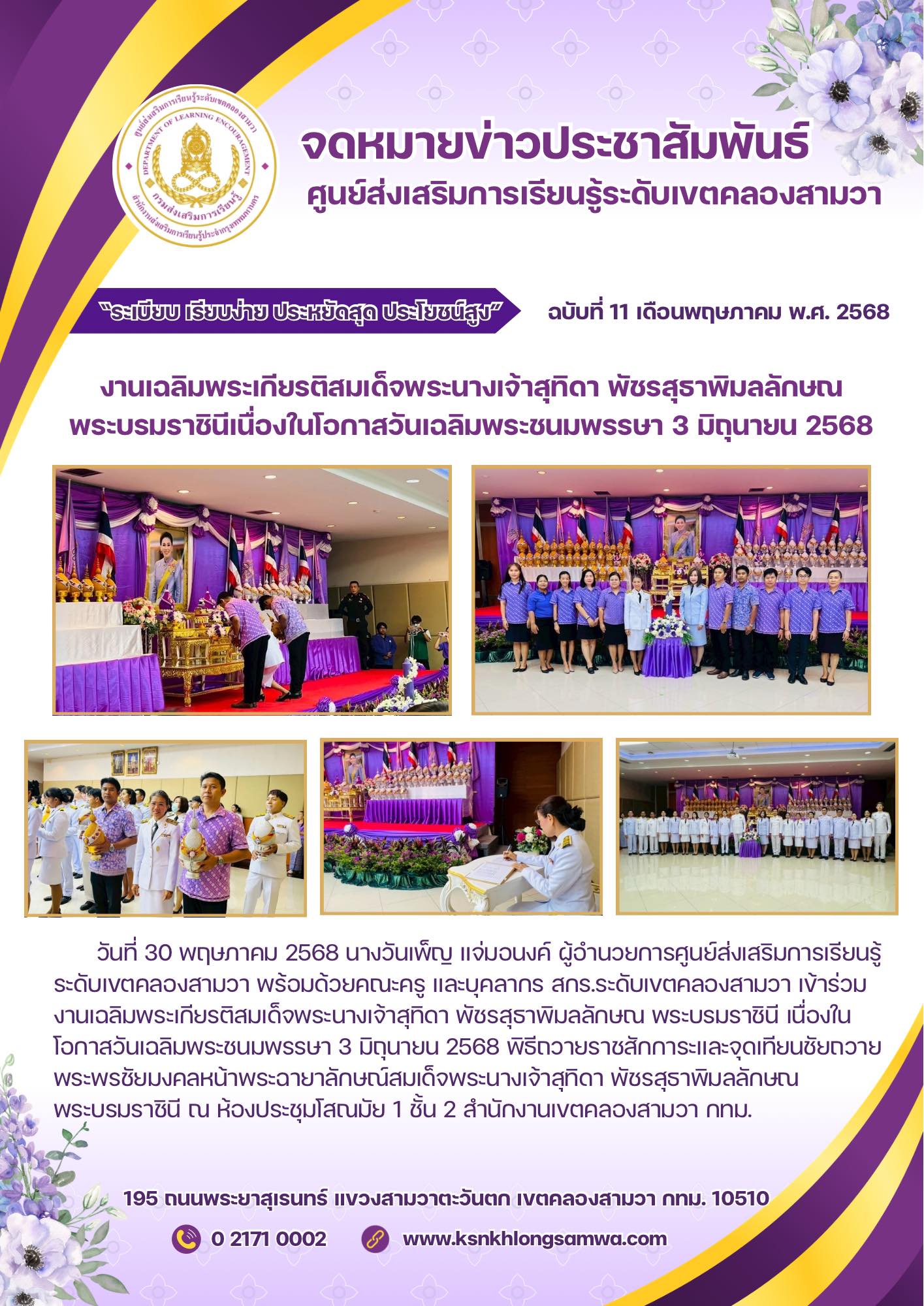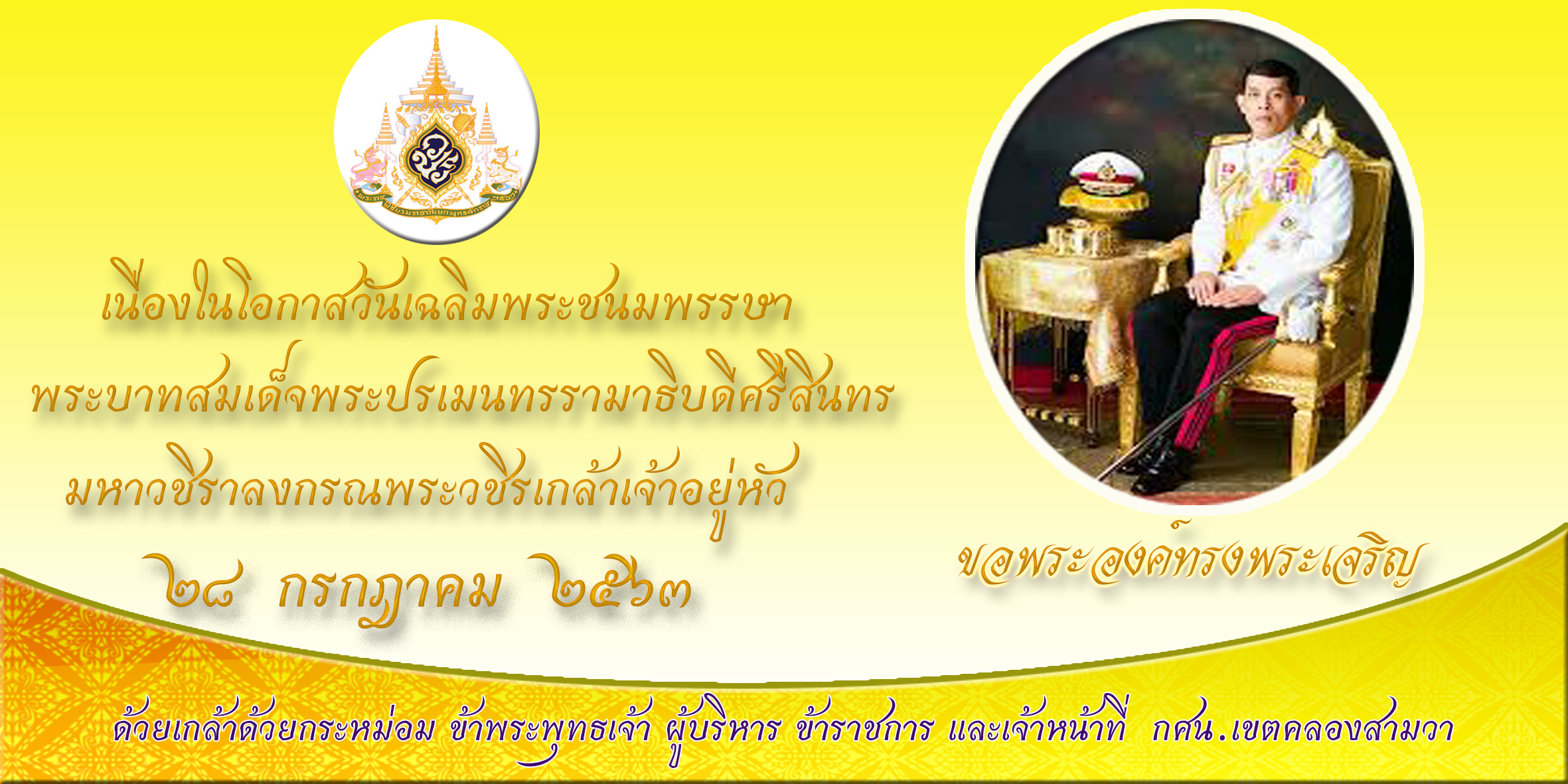วันที่ 28 กรกฎาคม 2565 คณะผู้บริหาร คณาจารย์ กศน.เขตคลองสามวา เข้าร่วมพิธีถวายพระพรชัยมงคล พระบาทสมเด็จพระปรเมนทรรามาธิบดีศรีสินทรมหาวชิราลงกรณ พระวชิรเกล้าเจ้าอยู่หัว