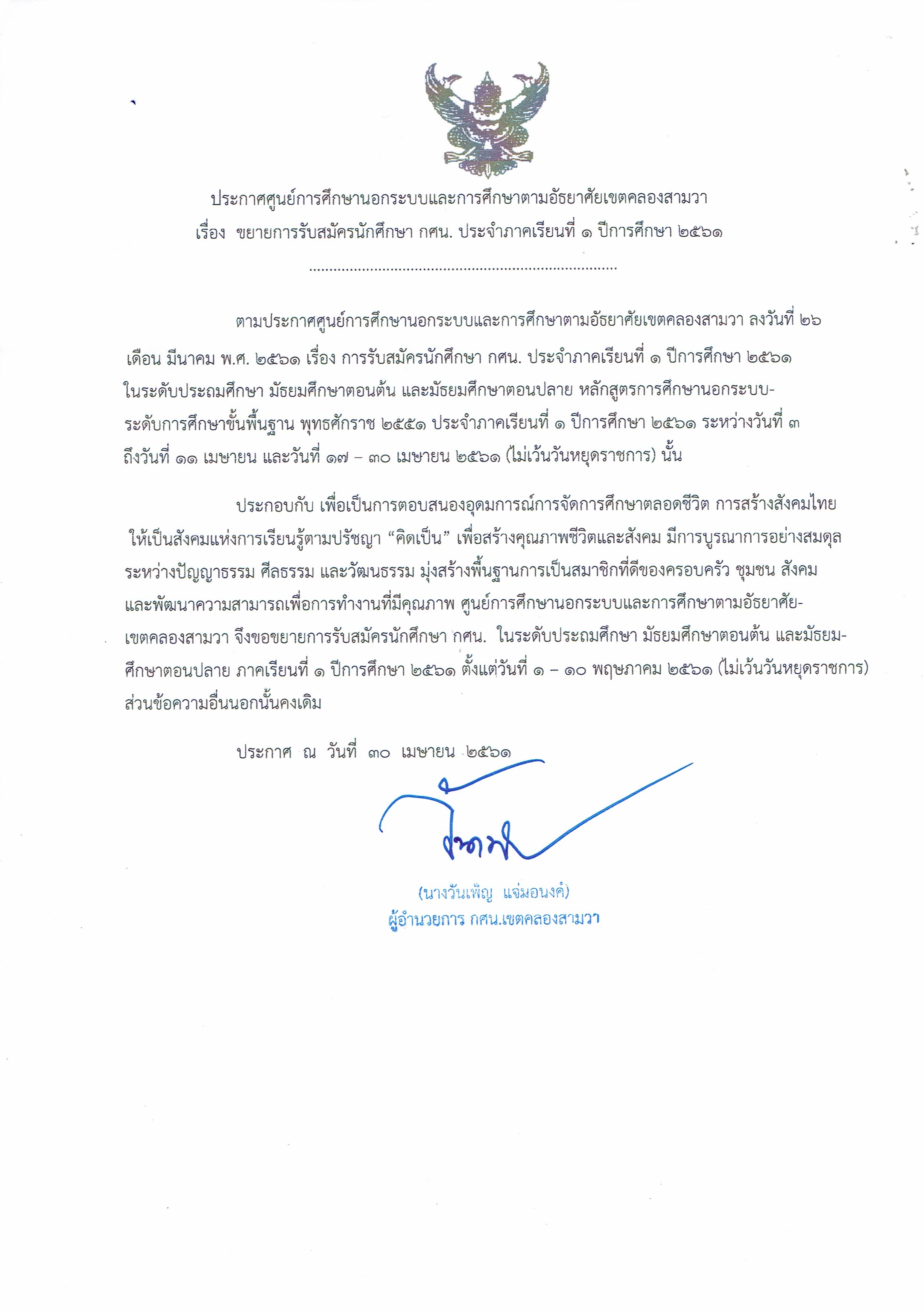 ภาคเรียนที่ 1 ปีการศึกษา 2565 ณ กศน.เขตคลองสามวา -