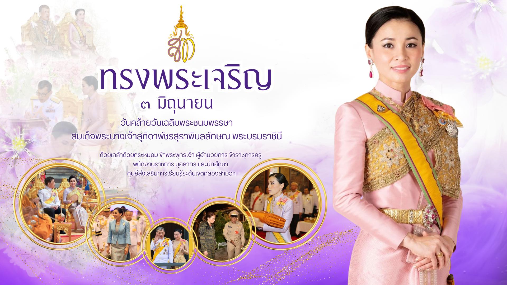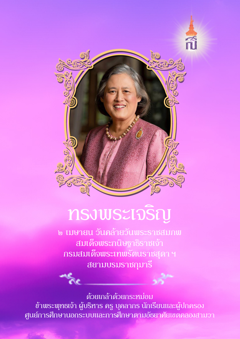 นางวันเพ็ญ แจ่มอนงค์ ผู้อำนวยการ กศน.เขตคลองสามวา คณะครู และบุคกรทางการศึกษาร่วมลงนามถวายพระพร สมเด็จพระกนิษฐาธิราชเจ้า กรมสมเด็จพระเทพรัตนราชสุดา เจ้าฟ้ามหาจักรีสิรินธร